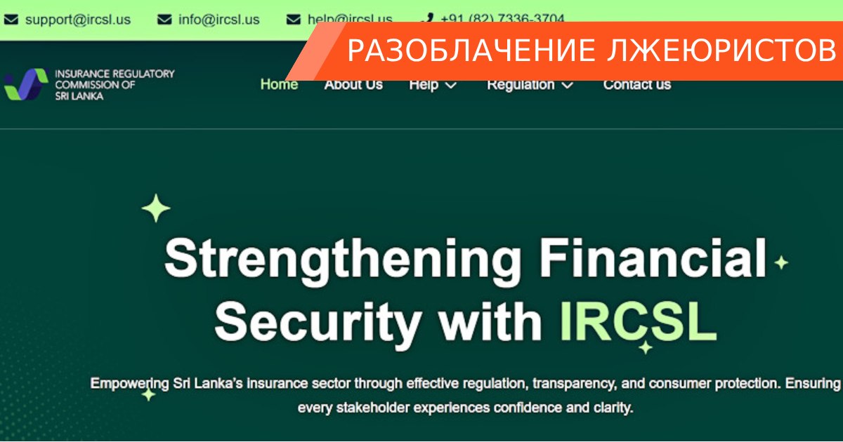 Речь идет о фальшивых юристах, которые предлагают возврат средств. Такие проходимцы активно и достаточно умело используют юридическую терминологию, постоянно ссылаются на законы и нормы, прикрываются названиями реально существующих регуляторов и прочих организаций. Сегодня разберемся, по каким принципам работает такой обман. Для примера возьмем жуликов, которые ссылаются на страхового регулятора Шри-Ланки, хотя не имеют к нему никакого отношения.