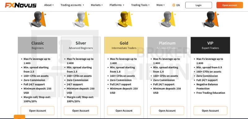 На сайте FX Novus пользователям предлагаются следующие типы торговых счетов: